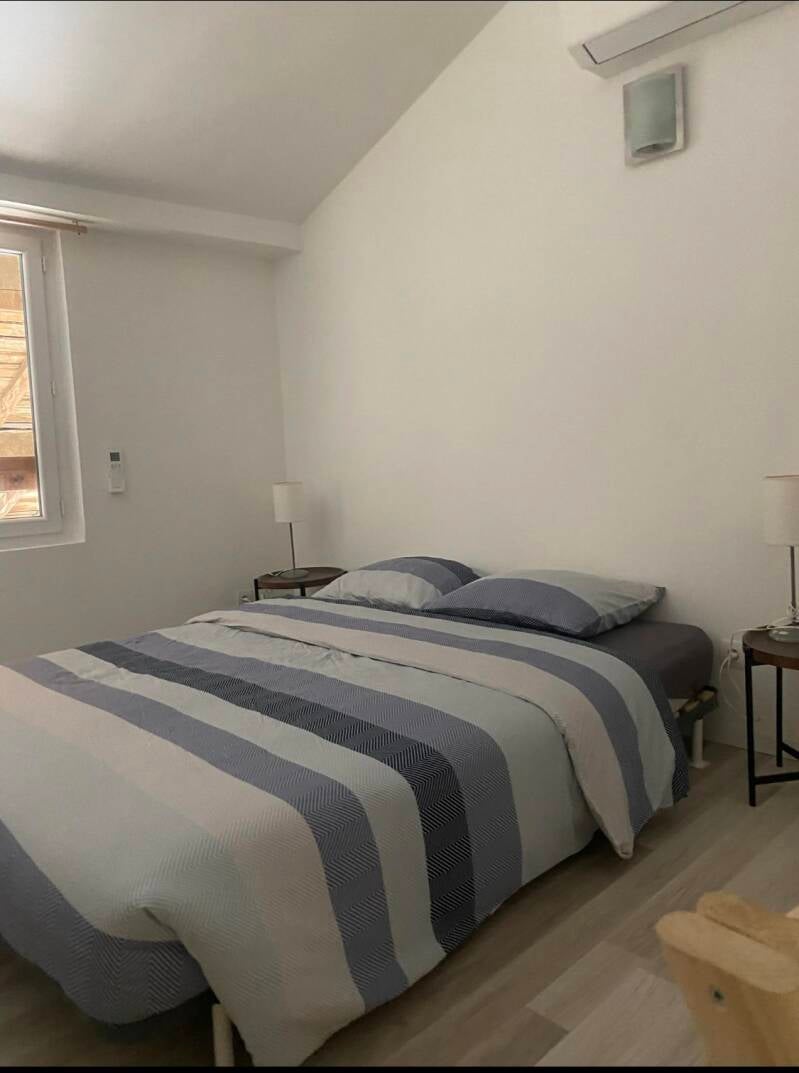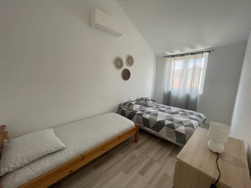 Appartement de plein pied (45m2) avec petite cuisine équipée, 2 belles chambres, une sdb+wc.
